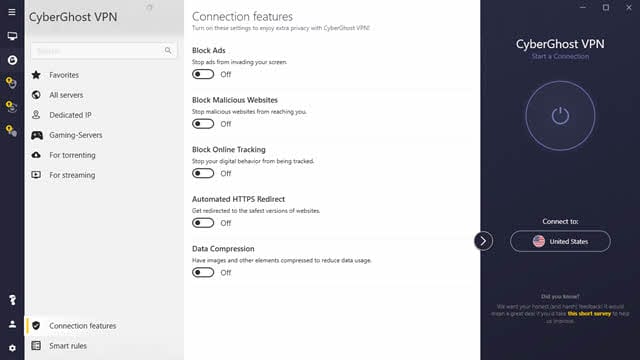永久免费会员可以使用 Open加速器、PPTP、Kerio 或 SSH 进行连接。有 50 到 500 GB 的高级计划。在美国、英国、法国、德国、香港、意大利、荷兰和俄罗斯等8个国家拥有加速器服务器网络。